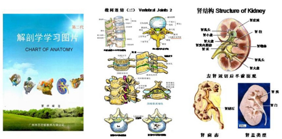 传统挂图只有正常形态,为教而设,现着眼于学,加入病变形象和临床要点提示并设问,以A3、A4大过塑悬挂于实验室、陈列室。也印成32开图册,供网上选购(图四)。