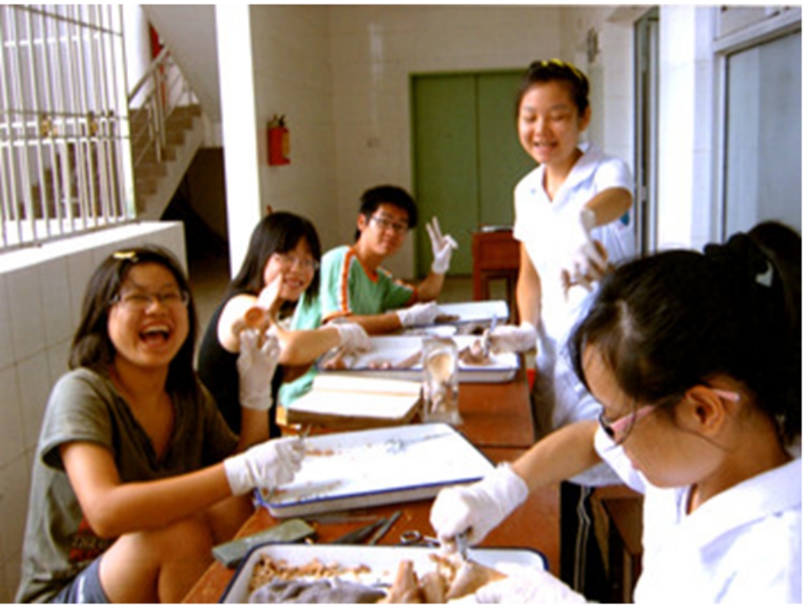 图七 学生做标本功。学生勤工俭学有收入,学习有长进,学校获得有质量的标本,还节省了投资。当年一个曾参与活动的学生后来赴美留学,因有此技艺不用去洗碗就赚到较多学费,他对专业和经济上的受益表示衷心赞赏。此种活动尤其值得那些媒体基础不足、学生经济困难的新建民办院校采用。